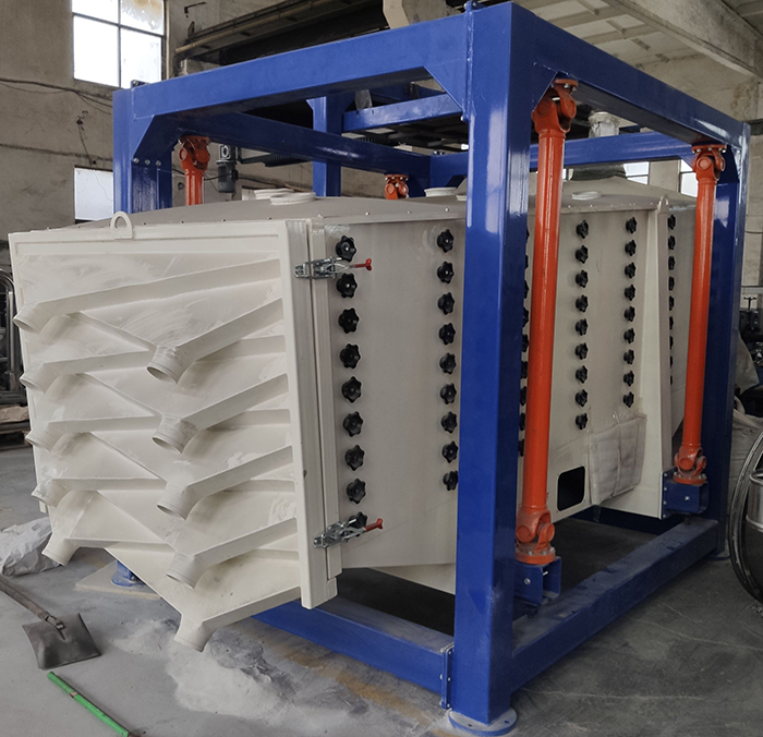 8、由于采用平面回轉原理,明顯改善了物料的分布狀態,從而提高了篩面有效利用率,最終提高篩分效率,降低了成品物料中的粉末含量;