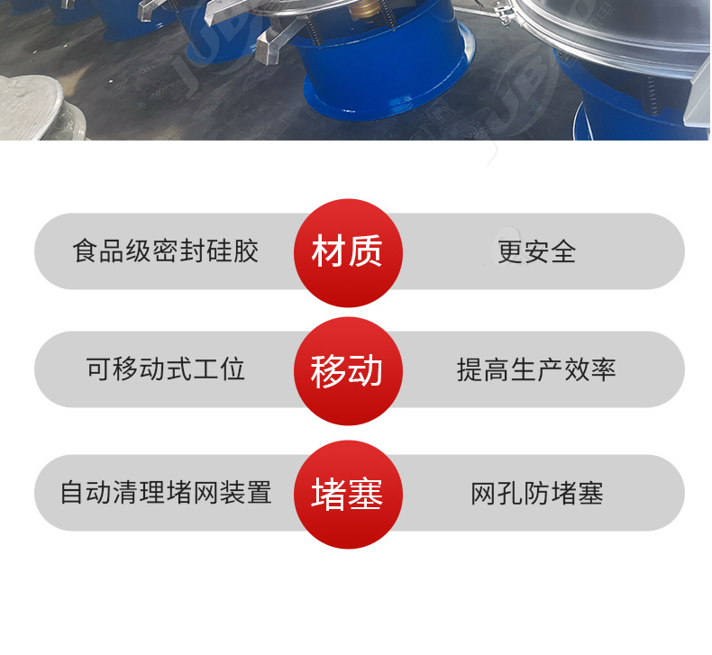 5、網(wǎng)孔不堵塞,無濺料現(xiàn)象,雜質(zhì)粗料自動排出,可連續(xù)作業(yè)。