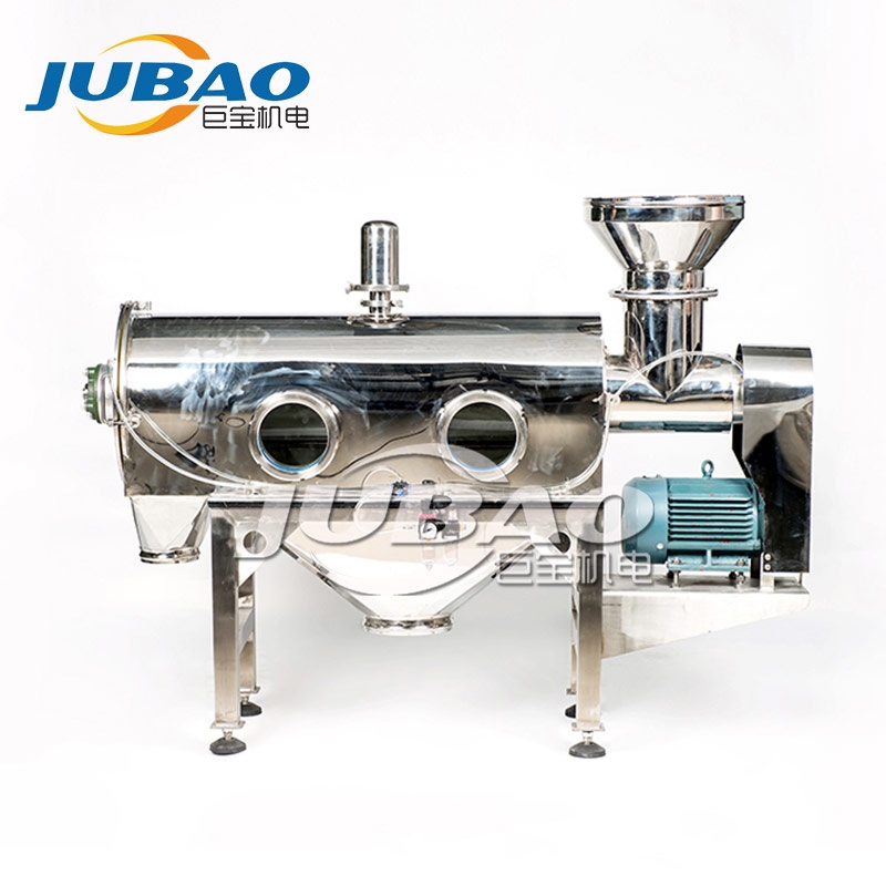 氣流篩篩網(wǎng)為圓筒狀,置于機(jī)體內(nèi),物料通過(guò)螺旋輸送系統(tǒng)后、和氣流混合。霧化進(jìn)入網(wǎng)筒內(nèi),通過(guò)網(wǎng)筒內(nèi)風(fēng)輪葉片使物料同時(shí)受離心力和旋風(fēng)推進(jìn)力,從而近使物料噴射過(guò)網(wǎng),由細(xì)料排出口排出,不能過(guò)網(wǎng)的物料沿網(wǎng)筒壁從粗料排出口排出。