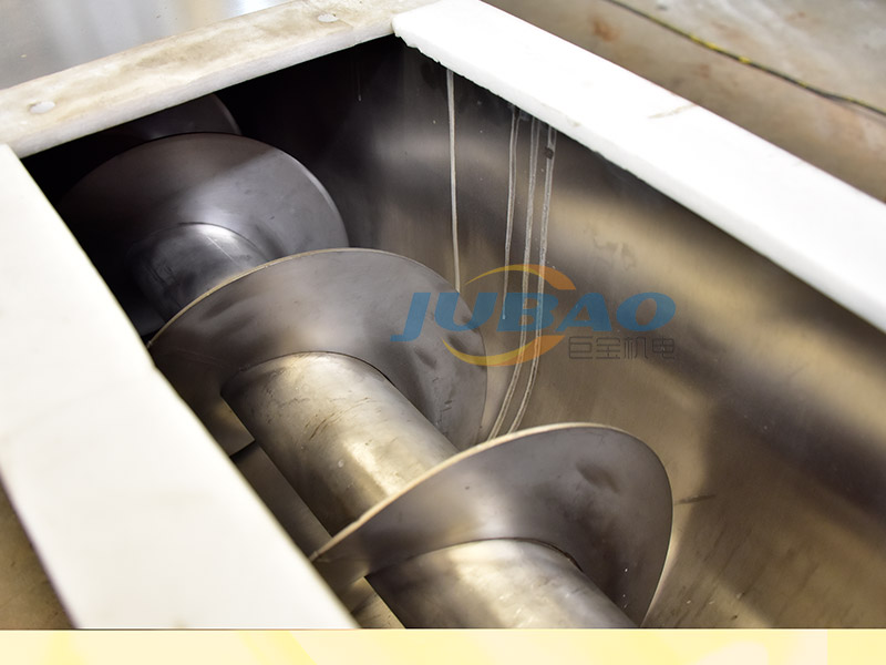 2、從進(jìn)料口進(jìn)料經(jīng)螺旋器強(qiáng)制性使物料輸送到出料口。