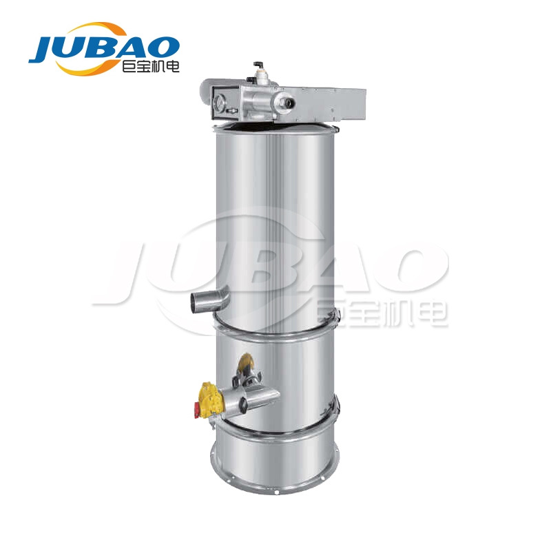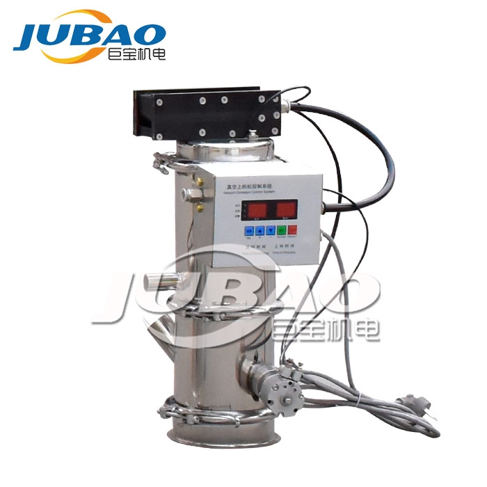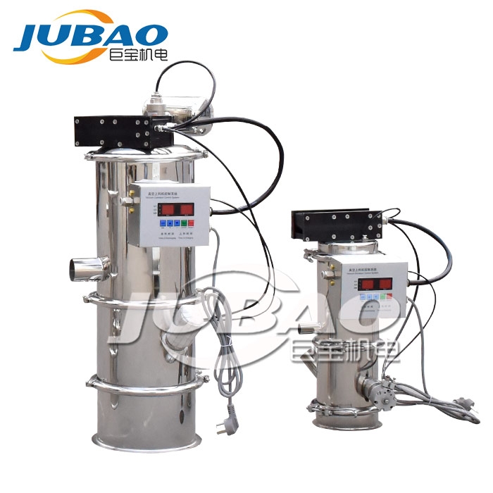 我公司生產的真空上料機是一種粉狀料、粒狀料、粉粒料混合料的真空輸送設備。由真空泵(無油、無水)、真空料斗、過濾器(有聚酯覆膜過濾器、PE過濾器、316L不銹鋼過濾器或鈦金屬過濾器多種選擇)、壓縮空氣反吹裝置、氣動放料門裝置、料位自動控制裝置、不銹鋼吸料咀、輸送軟管等組成,整套系統設計合理、制造精美。
