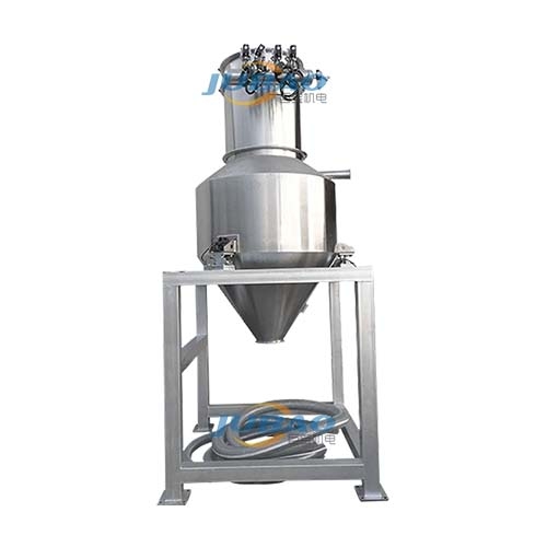 我公司生產的連續式真空上料機是一種粉狀料、 粒狀料、粉粒混合料的真空輸送設備。 真空上料機能自動地將各種物料輸送到包裝機、 注塑機、 粉碎機等設備的料斗中, 也能直接把被混合的物料輸送到混合機(如V型混合機、 二維混合機、三維混合機等)中, 減輕了工人的勞動強度, 解決了加料時粉塵飛揚的問題。 真空上料機由真空